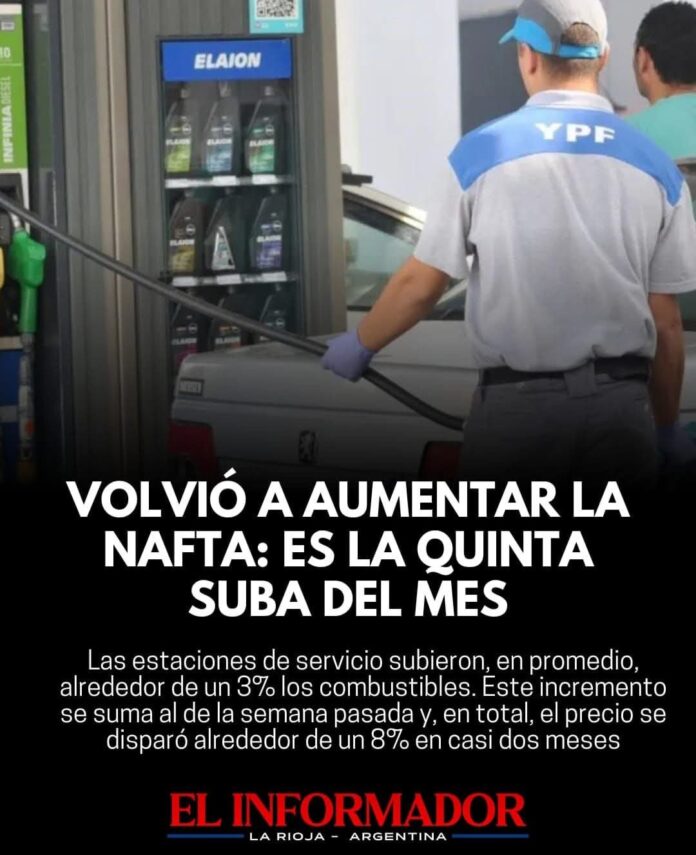 Inicio Destacadas Volvió a aumentar la nafta: es la quinta suba del mesDestacadasVolvió a aumentar la nafta: es la quinta suba del mes septiembre 23, 2025FacebookTwitterPinterestVKWhatsApp Artículos relacionadosMás del autorLa carne subió un 10% en marzo y recarga el IPC, como en febreroSegún la escribana, Adorni compró el departamento de Caballito en 12 cuotas y sin interesesJavier Milei volvió a atacar a los periodistas y aseguró que «la motosierra sigue encendida»DEJA UNA RESPUESTA Cancelar respuestaPor favor ingrese su comentario! Por favor ingrese su nombre aquí ¡Has introducido una dirección de correo electrónico incorrecta!Por favor ingrese su dirección de correo electrónico aquí Guardar mi nombre, correo electrónico y sitio web en este navegador la próxima vez que comente.