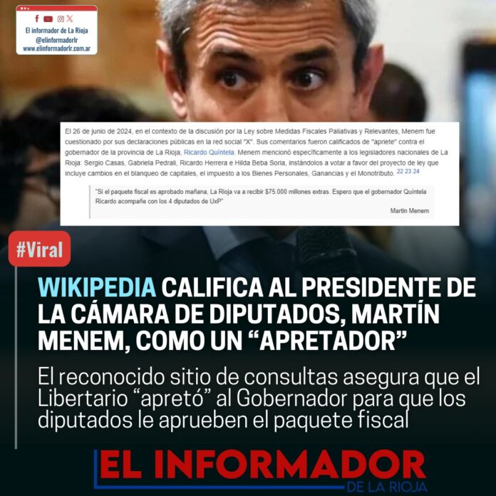 Inicio Internet WIKIPEDIA CALIFICA AL PRESIDENTE DE LA CÁMARA DE DIPUTADOS, MARTÍN MENEM, COMO...InternetWIKIPEDIA CALIFICA AL PRESIDENTE DE LA CÁMARA DE DIPUTADOS, MARTÍN MENEM, COMO UN «APRETADOR» junio 28, 2024FacebookTwitterPinterestVKWhatsApp Artículos relacionadosMás del autor«ME QUISO QUITAR LA VIDA»VIOLENCIA DE GÉNERO: LA JUSTICIA INVESTIGA SUPUESTOS MALTRATOS DEL EX PRESIDENTE ALBERTO FERNÁNDEZ A LA EX PRIMERA DAMA FABIOLA YAÑEZCOPA AMÉRICA 2024: MULTITUDINARIO BANDERAZO ARGENTINO EN NUEVA YORKDEJA UNA RESPUESTA Cancelar respuestaPor favor ingrese su comentario! Por favor ingrese su nombre aquí ¡Has introducido una dirección de correo electrónico incorrecta!Por favor ingrese su dirección de correo electrónico aquí Guardar mi nombre, correo electrónico y sitio web en este navegador la próxima vez que comente.